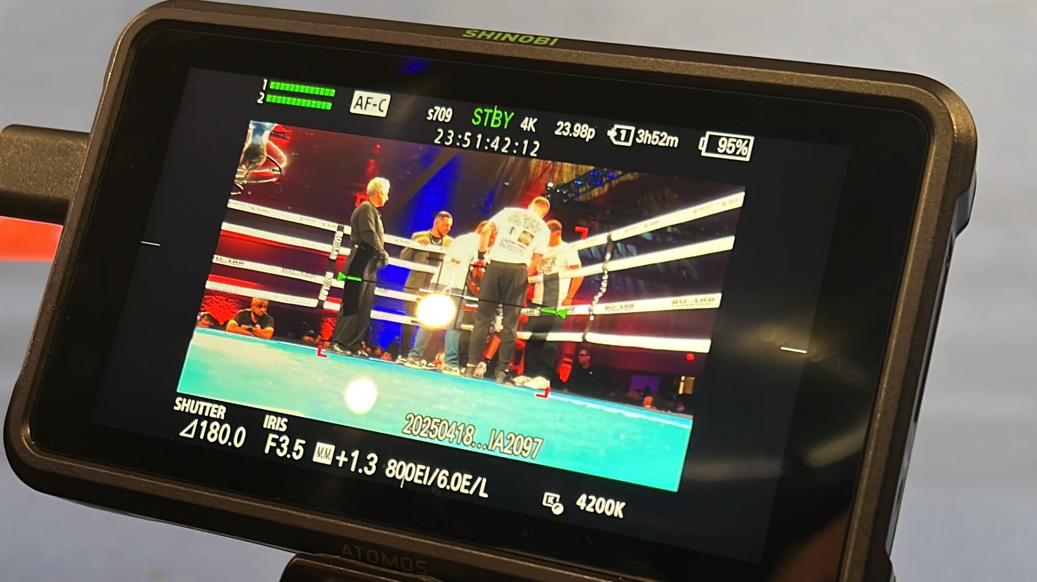 As fighters circled the ring during a recent boxing promo, shifting light made exposure a constant challenge. Peter turned to Shinobi’s exposure tools and focus assist to fine-tune his desired look mid-shoot. “With quick access to these features, I can move faster on set and stay confident knowing that every shot is exactly as I intend, right in‑camera. I was able to adapt instantly and ensure I didn’t miss any key moments,” he recalls.