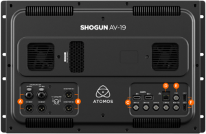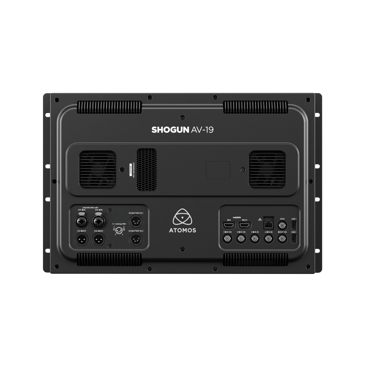 Shogun AV-19 supports demanding production workflows with comprehensive SDI and HDMI I/O, audio connectivity, timecode, and power options.