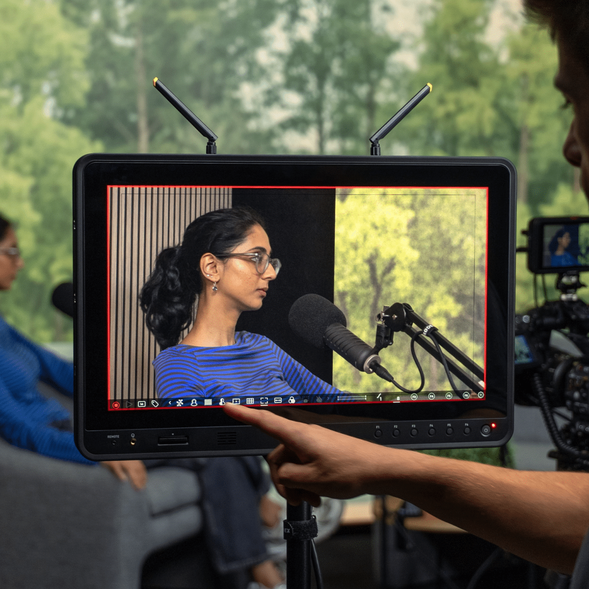 Timecode is a unique digital “timestamp” assigned to each frame of video. It ensures that all your devices—cameras, audio recorders, and monitors — are in perfect sync. Sumo PRO‑19 includes AirGlu timecode sync over RF or Bluetooth to act as a powerful timecode hub.